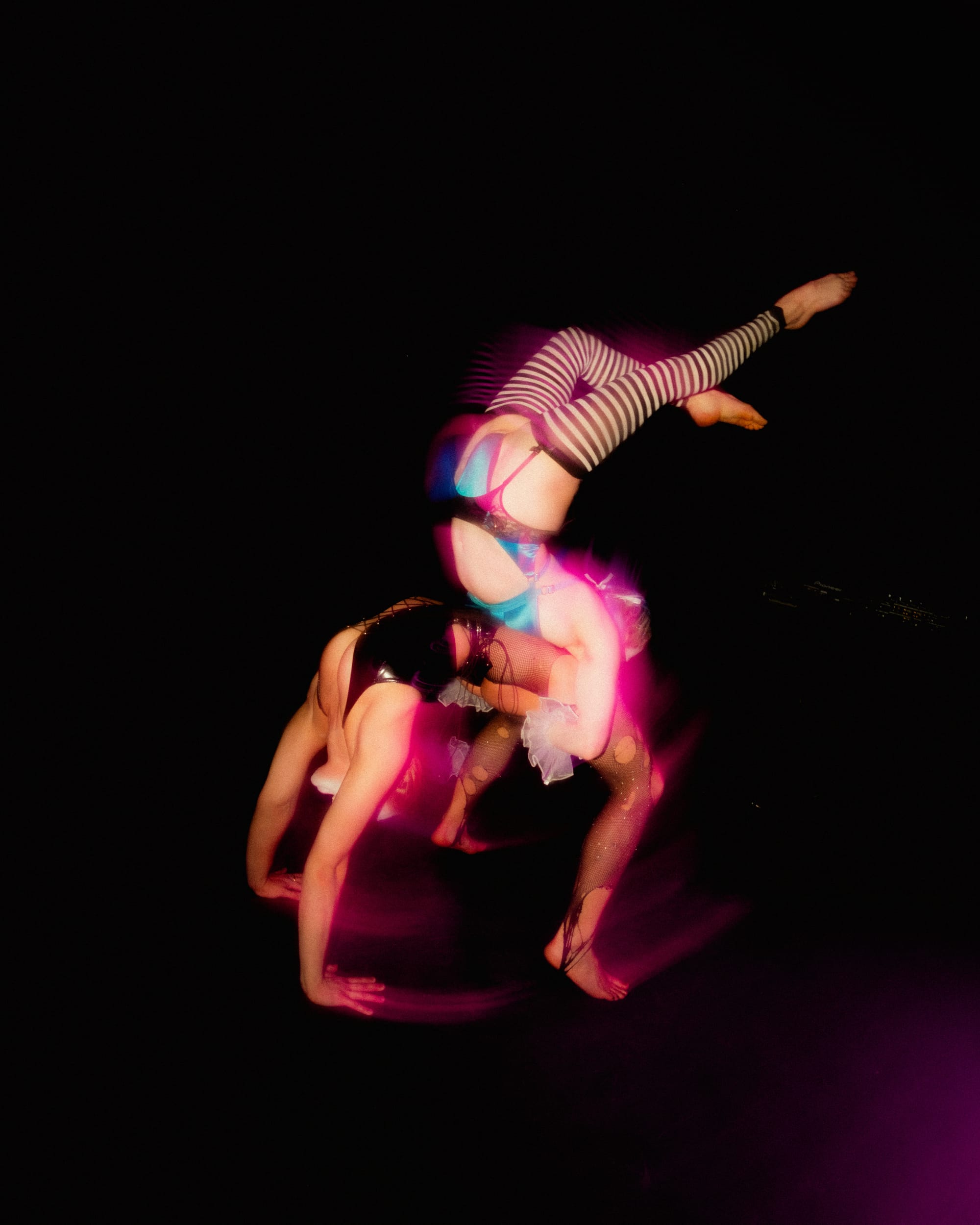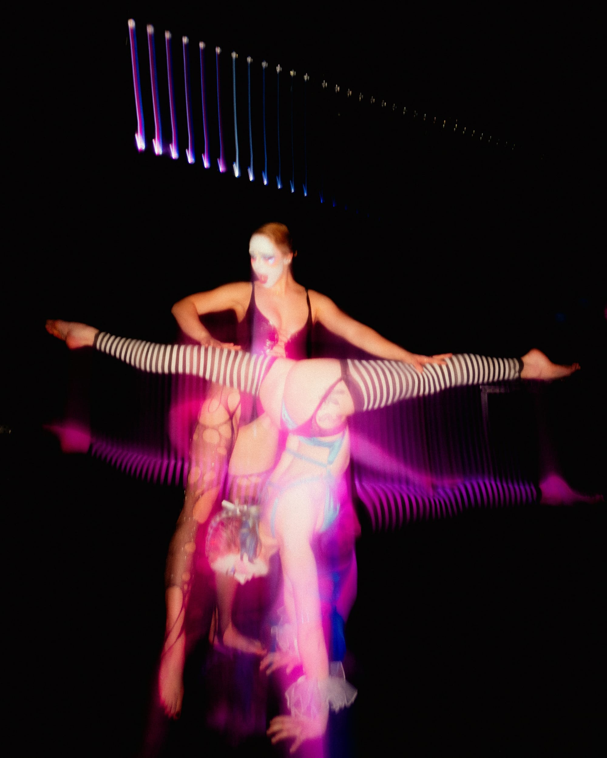 Outside, dragon poi performed by @Torin.Movement. Inside, a kaleidoscope of experimental drag and @ValerieAuCiel exploring the intersection of contortion, acro dance, and the clown aesthetic.